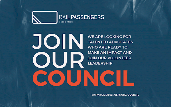Every other year, we give interested Rail Passengers members the opportunity to take their support for more and better passenger trains to the next level by taking part in our national volunteer advisory body, the Council of Representatives. We are now accepting candidates wishing to be elected to the Council as State Representatives for the two-year term ending February 29, 2028.