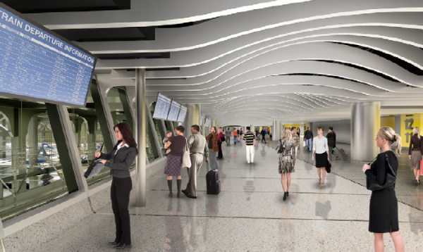 The plan included renderings of what New York City’s Moynihan Station expansion would look like as the hub of a world class passenger rail corridor.