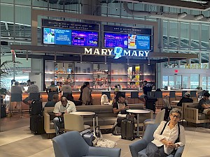 For those familiar with Brightline’s existing stations, the Orlando station includes many of the familiar amenities including a marketplace called MRKT where one can purchase snacks, beverages, and other conveniences as well as Brightline shirts and other swag. The station also includes a full-service bar and café called Mary Mary where one can buy alcoholic beverages as well as hot meals. The in-station Mary Mary bars are Brightline’s alternative to having on board café car, as onboard food service is limited to beverages and some light snacks and sandwiches. The Orlando station also has a conference/meeting room that can be reserved for business travelers.
